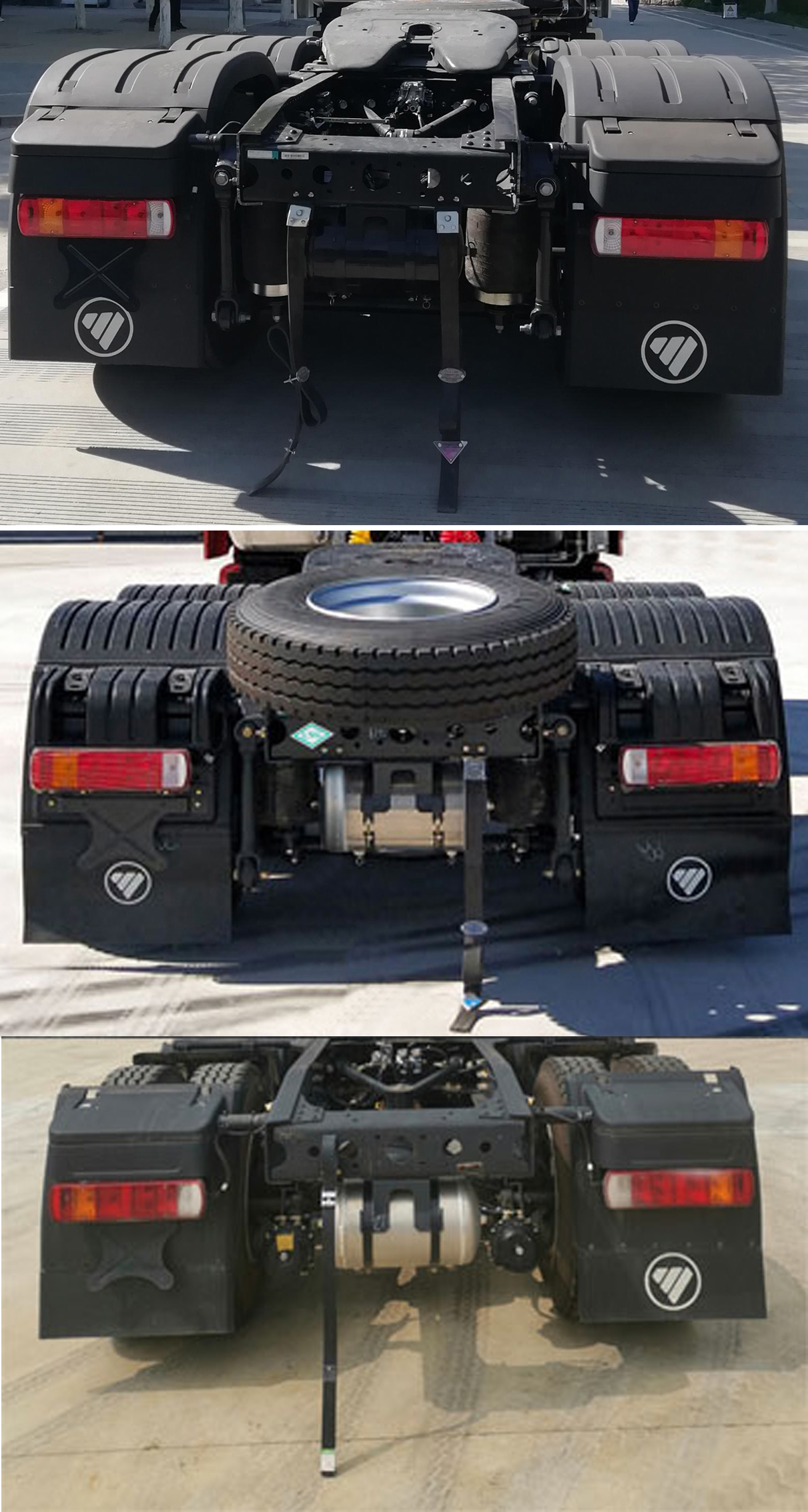 | 备注 | 1.选装护轮罩,选装平顶驾驶室,高顶驾驶室选装不同形式导流罩,且导流罩可去掉,高顶驾驶室选装驻车空调,且驻车空调可去掉.选装前围装饰件. 2.整备质量(kg)/准拖挂车总质量(kg)/半挂车鞍座最大允许承载质量(kg)对应关系为:8805/40000/16065,9300/39570/15570. | ||||||||||