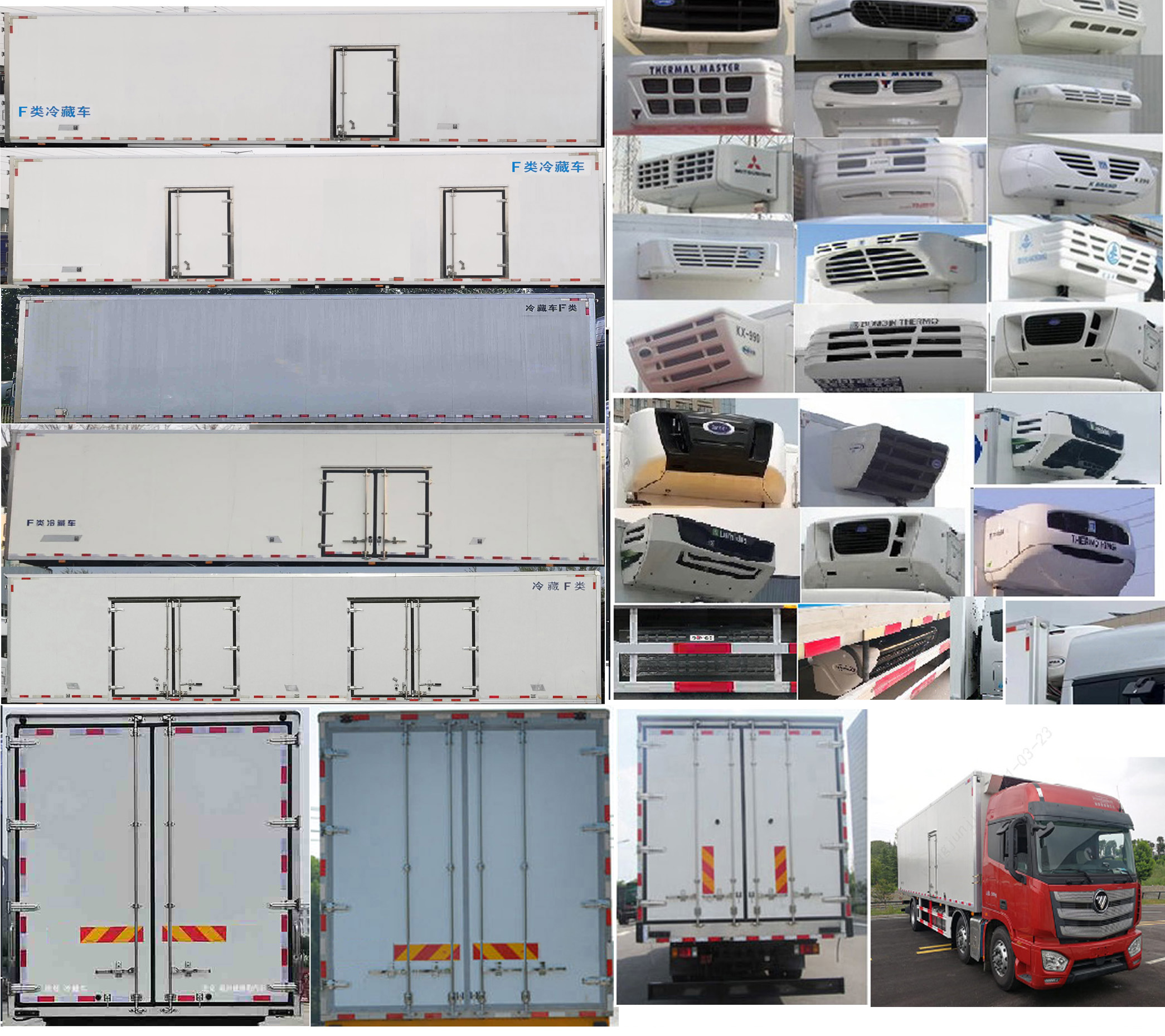| 备注 | 选装前围装饰件及前部灯具.选装后视镜.选装平顶驾驶室,高顶驾驶室选装超大保险杠、导流罩、驻车空调,选装货箱照片.选装制冷机组照片,选装相同功率不同安装位置制冷机组,选装LED后部组合灯具.液压尾板可不装.车厢门数量及尺寸:后门2个,侧门4个, 后门:2400×1190(高×宽),侧门:1740×940(高×宽). | ||||||||||