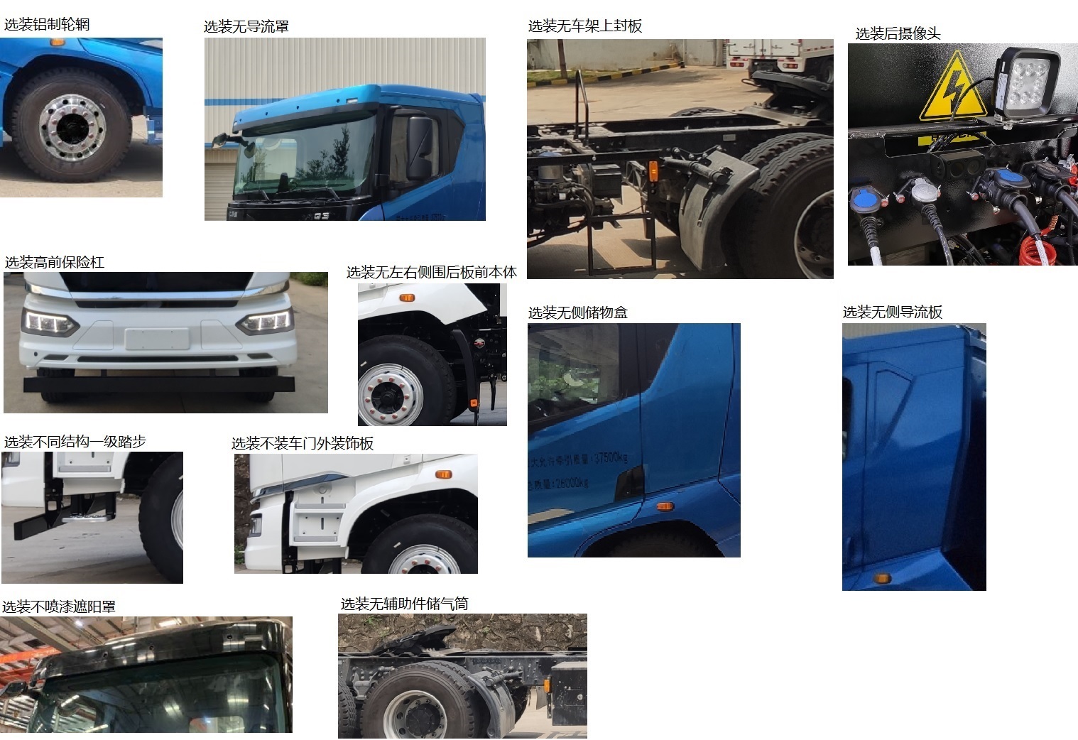 | 备注 | 选装铝制轮辋,无导流罩,无车架上封板,高前保险杠,不同结构一级踏步,不装车门外装饰板,无左右侧围后板前本体,无侧储物盒,无侧导流板,不喷漆遮阳罩,后摄像头,无辅助件储气筒,选装无导流罩时对应的整车高度为3310mm. | ||||||||||