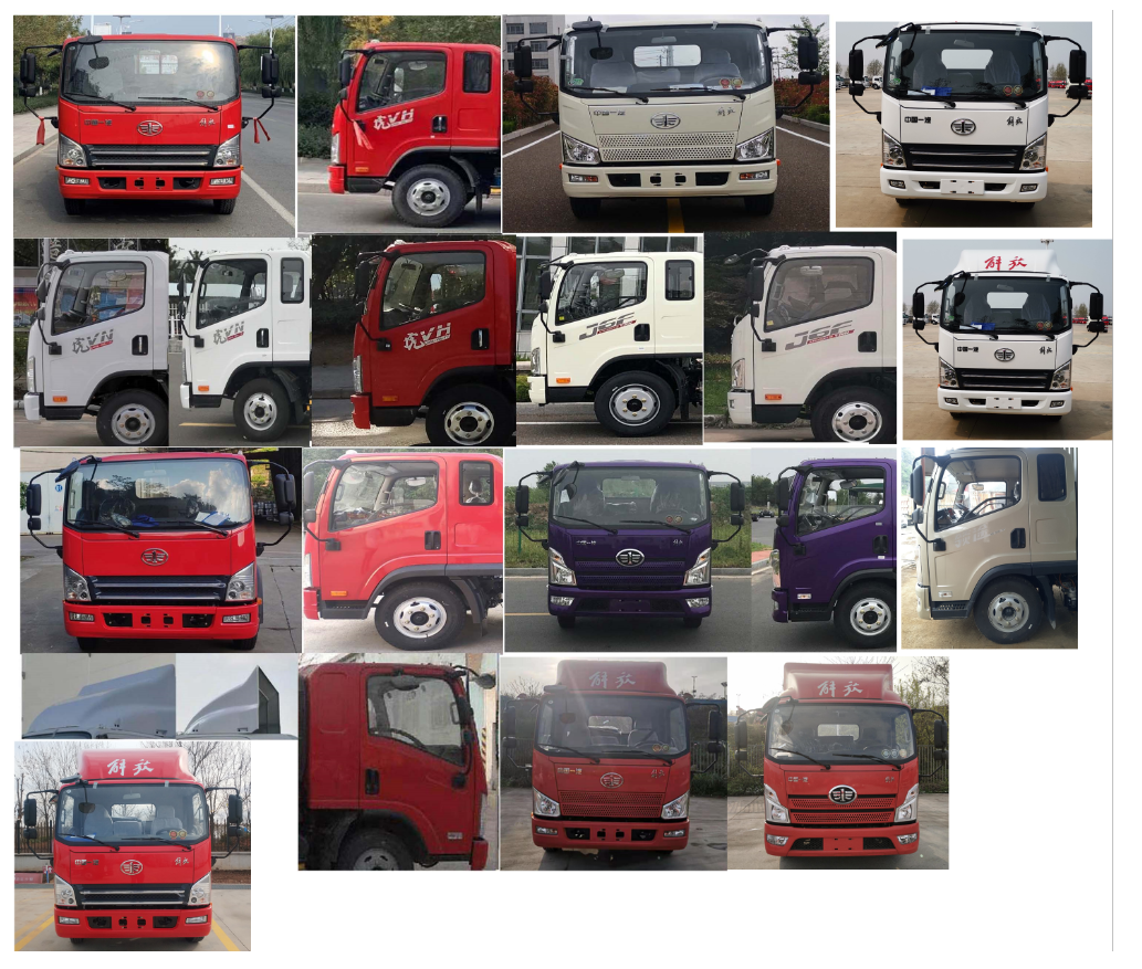 | 备注 | 选装导流罩.选选装新前脸驾驶室.选装货箱.仅结构发生改变.选装排半驾驶室, 整车宽度2200,2320,2420,2550一一对应货箱宽度2100,2200,2300,2430. 货箱长度3820对应10个系固点,货箱长度4200对应14个系固点 | ||||||||||