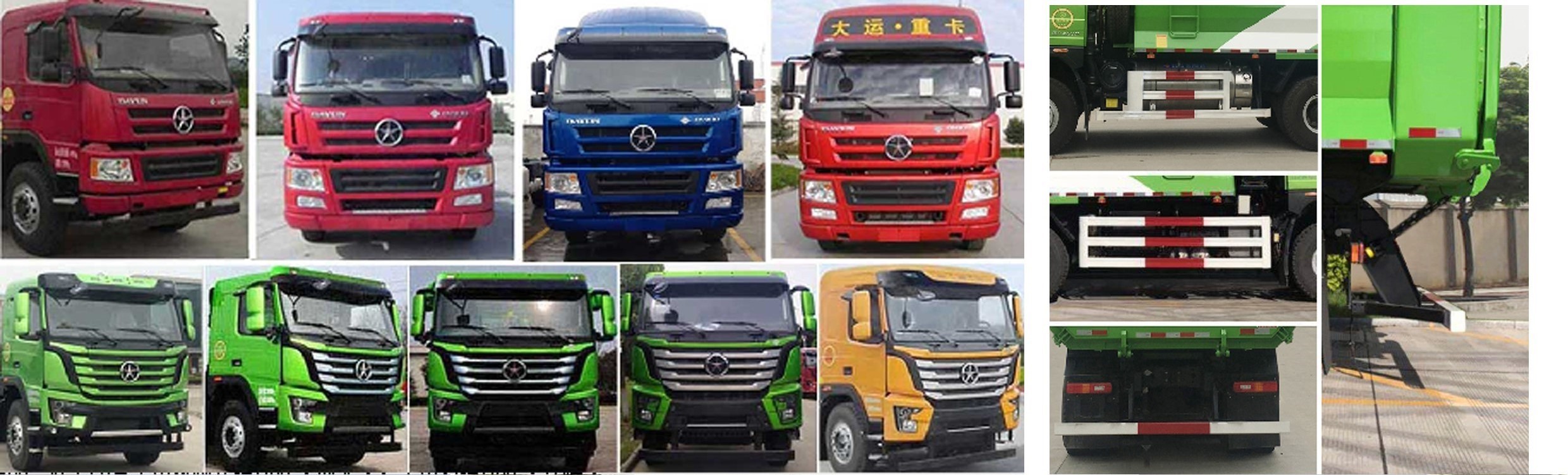 | 备注 | 自卸方式为后卸。选装高顶驾驶室,选装中高顶驾驶室,选装前围上下面罩;选装顶部及侧导流罩;选装遮阳罩样式;选装前部灯具及侧面灯具样式,选装前雾灯;选装踏步、后视镜样式,选装前、后组合灯灯罩,选装排气管样式,选装副散热器,选装四方位影像系统,选装导静电橡胶拖地带样式,选装空滤样式,选装后处理器护板样式,选装储气筒安装方式。选装环保盖,选装不同货箱风格。整车长/前悬/轴距/后悬/货箱长对应关系:8655/1430/1725/5800,8715/1490/1725/5800,8855/1430/1925/6000,8915/1490/1925/6000。 | ||||||||||
