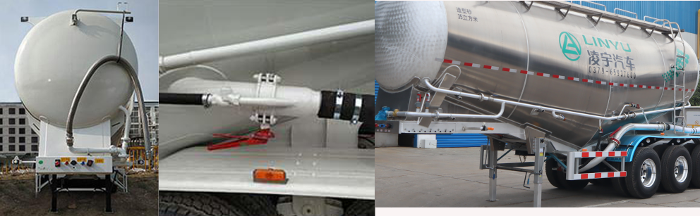 | 备注 | 整车长=前悬+轴距+后悬对应关系(前回转半径,牵引销中心轴线到半挂车最后端水平距离,与之匹配的半挂牵引车前回转半径): 9000=670+4750+1310+1310+960(980,8330,1130);选装上平台形式;选装轮胎罩形式;选装前封板和后部封板形式;选装爬梯形式;选装进气管路和出料管路形式;该车顶部封闭不可开槽,后部不可开启。 | ||||||||||