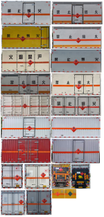 | 备注 | 该车适用于运输危险品。厢体顶部封闭,不可开启。类项号:2.1,2.2。厢体侧面选装开门型式及位置,选装不带侧开门,选装瓦楞板结构,厢体侧面板选装开百叶窗。 | ||||||||||