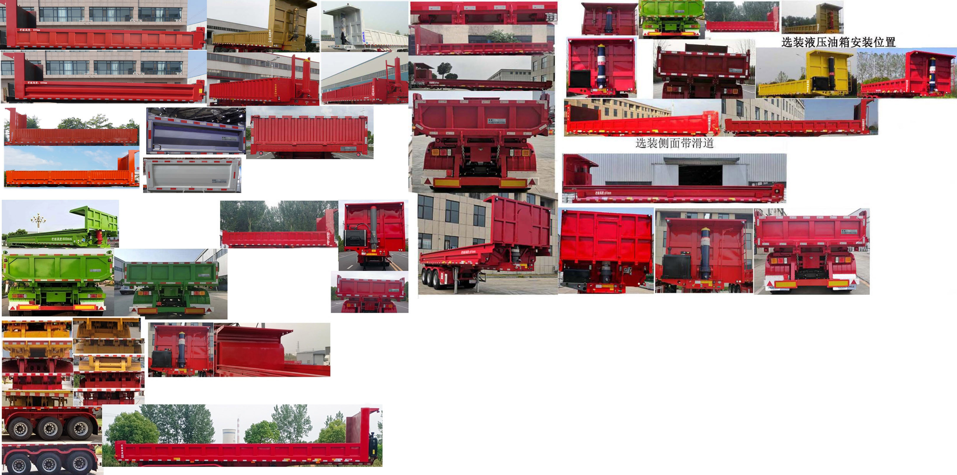 | 备注 | 卸货方式为后卸。选装前板样式,选装后部栏板样式,选装侧面栏板样式,选装侧面三开门结构,选装侧面四开门结构,选装液压油箱的安装位置,选装后翻转支架,选装侧厢带滑道样式,选装护轮样式 | ||||||||||