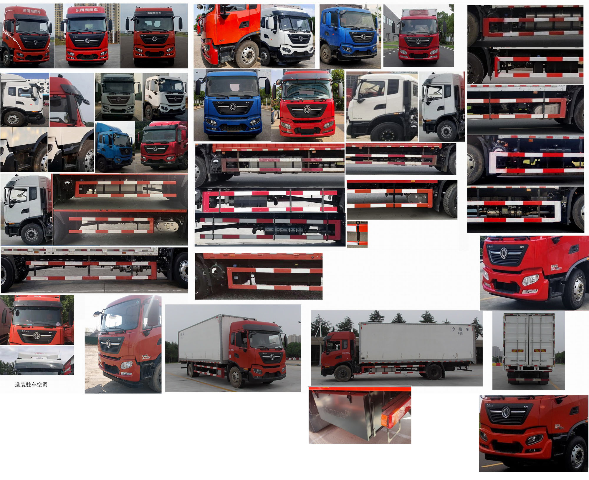 | 备注 | 外廓尺寸长/轴距/前悬/后悬/厢长/水平承载面系固点数量/整备质量的对应关系:9900/5800/1400/2700/7580/16/(8050,7350),10200/5800/1400/3000/7880/16/(8050,7350),10500/5800/1400/3300/8180/16/(8050,7350),12000/7150/1400/3450/9650/20/(8050,7350);随底盘选装驾驶室,选装侧窗装饰板,选装前雾灯,选装导流罩,选装遮阳罩,选装驾驶室顶部“东风商用车”企业标识,选装驾驶室“星辰版”企业标识;选装厢体结构,选装左置空滤器,选装侧转向灯,选装前下视镜,选装侧防护横杆固定方式,选装箱体铆钉结构,选装驻车空调,选装不同结构的车门裙板,选装无车门裙板照片,选装与车身颜色相同的前保险杠,选装桶式后处理结构,选装隔热罩,选装尿素罐位置,选装铝合金储气筒,选装高顶和平顶引气管位置,选装干燥器位置,随底盘选装前组合灯,选装工具箱,选装其它厂家功率相当的制冷机组,选装前置式或底置式制冷机组;侧面选装开门和不开门,选装尾板,尾板质量为550kg,尾板收起状态时的水平长度为295mm;选装尾板时仅选用断面尺寸Φ121的后防护,后防护材质:Q235,连接方式:焊接,离地高度470mm。车门数量及尺寸:2个,侧门:1850*850,后门:(内宽-300)/2*(内高-200)。 | ||||||||||