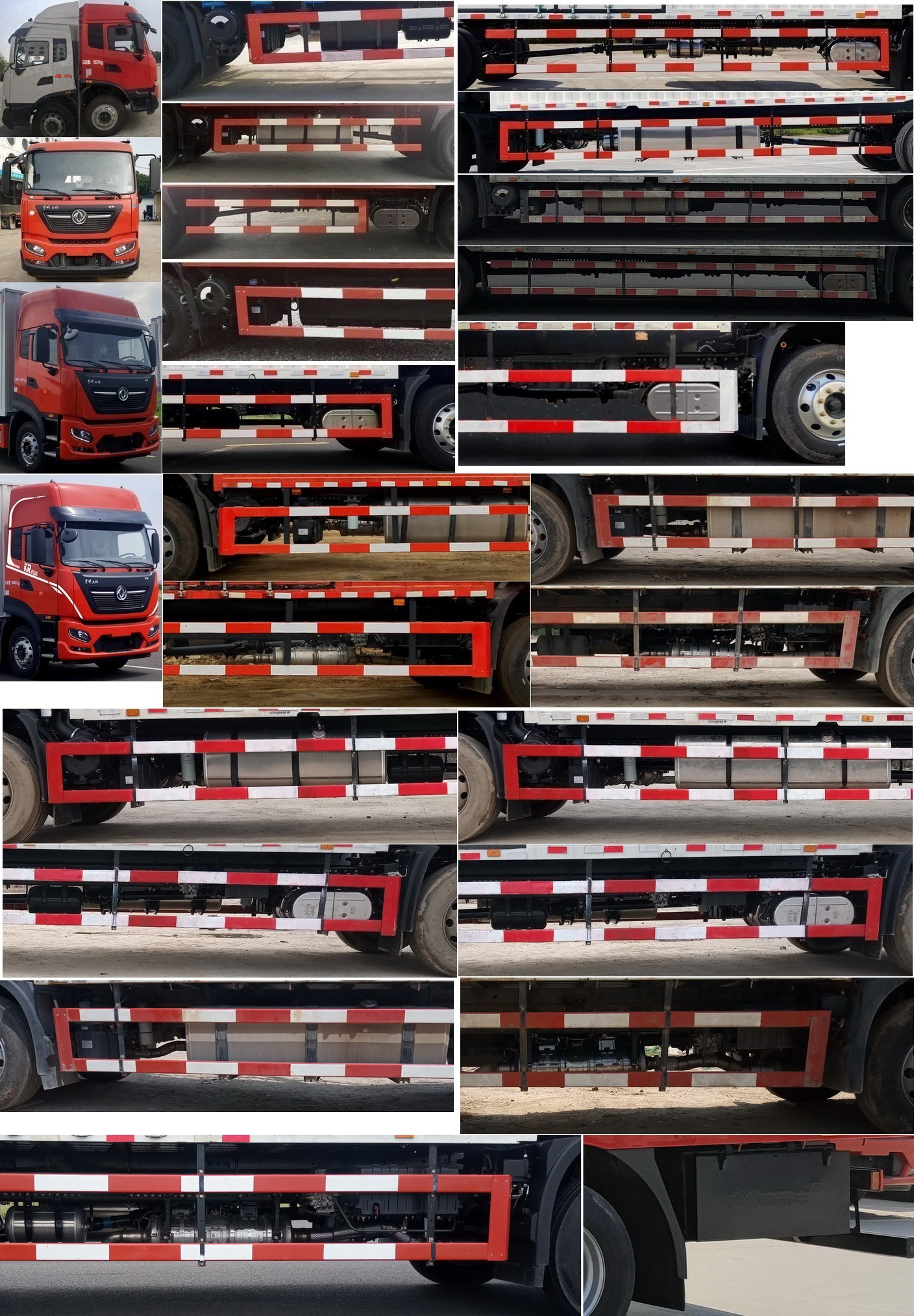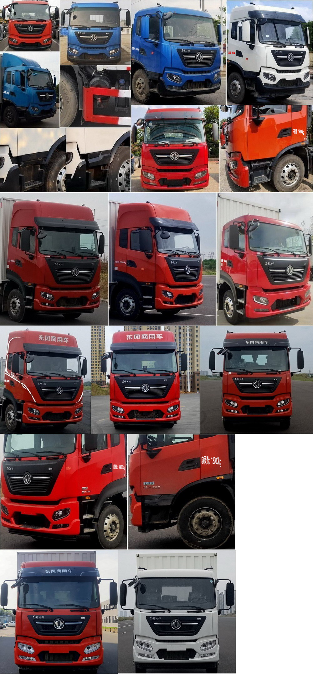 | 备注 | 外廓尺寸长/水平承载面系固点数量/厢长/轴距/前悬/后悬/整备质量对应关系: 10200/16/8000/5800/1400/3000/(8050,7750),12000/20/(9750,9800,9820)/7150/1400/3450/8500,9900/16/7700/5800/1400/2700/8050,10500/16/8300/5800/1400/3300/8500。 随底盘选装驾驶室,选装前雾灯,选装驾驶室侧窗玻璃和侧窗装饰板,选装前下视镜,驾驶室顶部选装导流罩,选装驾驶室拉花装饰;选装驾驶室顶部“东风商用车”企业标识;选装左车门标识;选装不同材质和容积的燃油箱;选装不同材质的储气筒;选装不同大小的蓄电池;选装不同结构的空滤器;选装不同结构的车门裙板,选装无车门裙板照片;选装与车身颜色相同的前保险杠;选装AEBS摄像头和雷达面罩;选装底盘布置;选装不同结构的后处理,侧面选装开门和不开门,厢体选装平板和瓦楞板结构;选装驾驶室前部灯具;选装尾板,尾板质量为550kg,尾板收起状态时的水平长度为295mm,选装尾板时仅选用断面尺寸φ121的后防护,后防护材质:Q235,连接方式:焊接,离地高度470mm;选装工具箱. 最高车速 105 对应的配置:1.发动机 B6.2NS6B230、B6.2NS6B260、D6.7NS6B290;2.轮胎 275/80R22.5 18PR、11R22.5 18PR;3.ABS 8/东科克诺尔商用车制动系统(十堰)有限公司;4.盘式制动器、制动器衬片更换报警装置、爆胎应急、胎压监测、ESC、AEBS、FCW。 空气悬架对应最高车速89km/h。 最高车速 89km/h 和 10.00R20 18PR 轮胎不对应 AEBS、ESC、制动器衬片更换报警装置、盘式制动器、驾驶室爆胎应急安全装置、轮胎气压监测系统。 轮胎爆胎应急安全装置型号/轮胎爆胎应急安全装置生产企业:3110010-KG8V1/扬州市奥特瑞汽车电子科技有限公司, 湖北源久汽车零部件有限公司;3110010-TF850/扬州市奥特瑞汽车电子科技有限公司,十堰市华迪汽车零部件有限公司。 轮胎规格型号/轮辋规格:10.00R20 18PR/7.5-20,11R22.5 18PR/22.5×8.25,275/80R22.5 18PR/22.5×8.25,295/60R22.5 18PR/22.5×9.00,315/60R22.5 20PR/22.5×9.75。 295/60R22.5 18PR轮胎仅对应D6.7NS6B290、B6.2NS6B245发动机、最高车速89、7150轴距、手动挡变速箱; 315/60R22.5 20PR轮胎仅对应D6.7NS6B290发动机、最高车速89、7150轴距。 自动挡变速箱8JZ仅对应发动机D6.7NS6B290、B6.2NS6B260。 | ||||||||||
