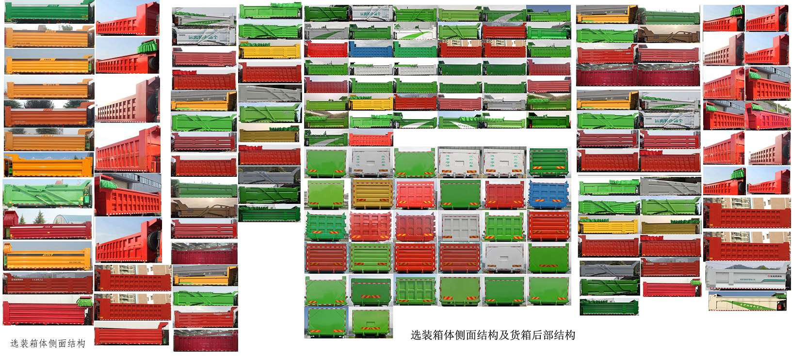 | 备注 | 随底盘选装驾驶室。选装箱体侧面结构,货箱后部结构,选装环保盖。随底盘选装EGP左置,随底盘选装油箱和EGP位置,随底盘选装电瓶框和尿素罐位置,随底盘选装引气道外观,随底盘选装后处理隔热板,选装黑色防锈喷漆防护装置,选装侧防护装置结构,选装翻转支架结构,选装铝合金储气筒,选装驾驶室拉花,选装高顶驾驶室不带气喇叭,随底盘选装油箱。 | ||||||||||