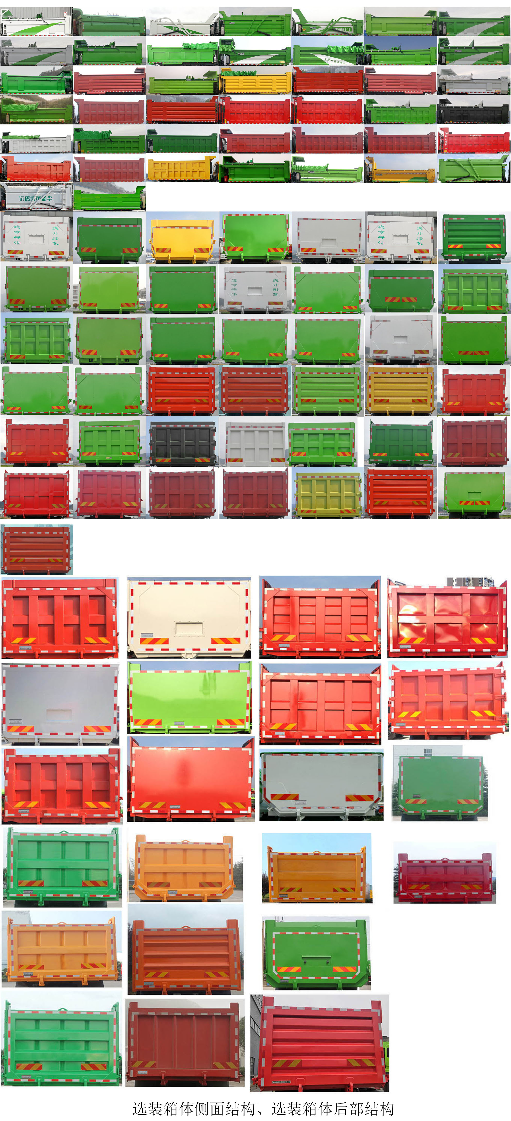 | 备注 | 选装箱体侧板结构,选装货箱后部结构,选装环保盖,随底盘选装电瓶框位置,随底盘选装不同材质的油箱,随底盘选装驾驶室,选装后处理隔热板,选装引气道外观,选装翻转支架结构,选装驾驶室拉花,选装高顶驾驶室不带气喇叭。 | ||||||||||