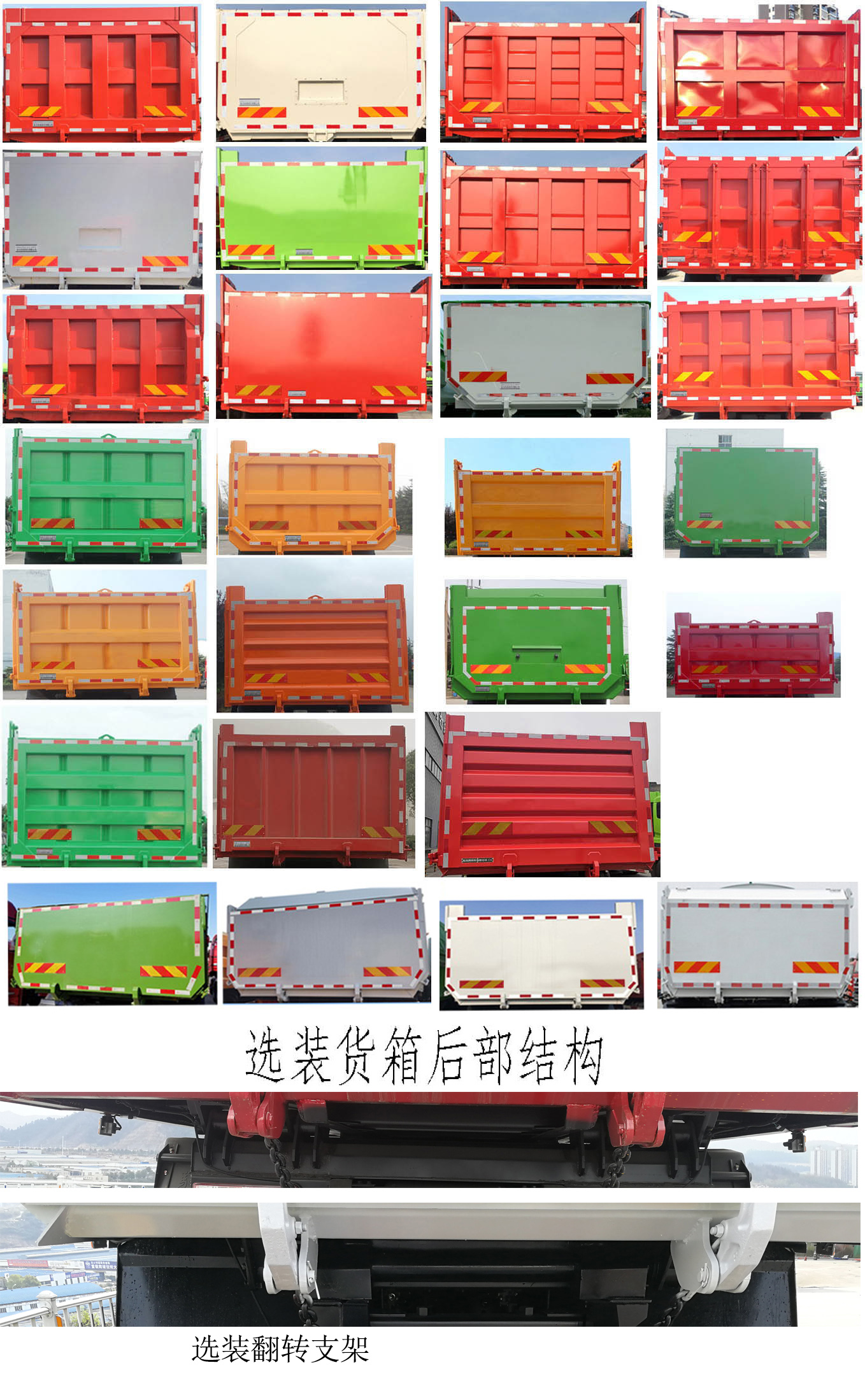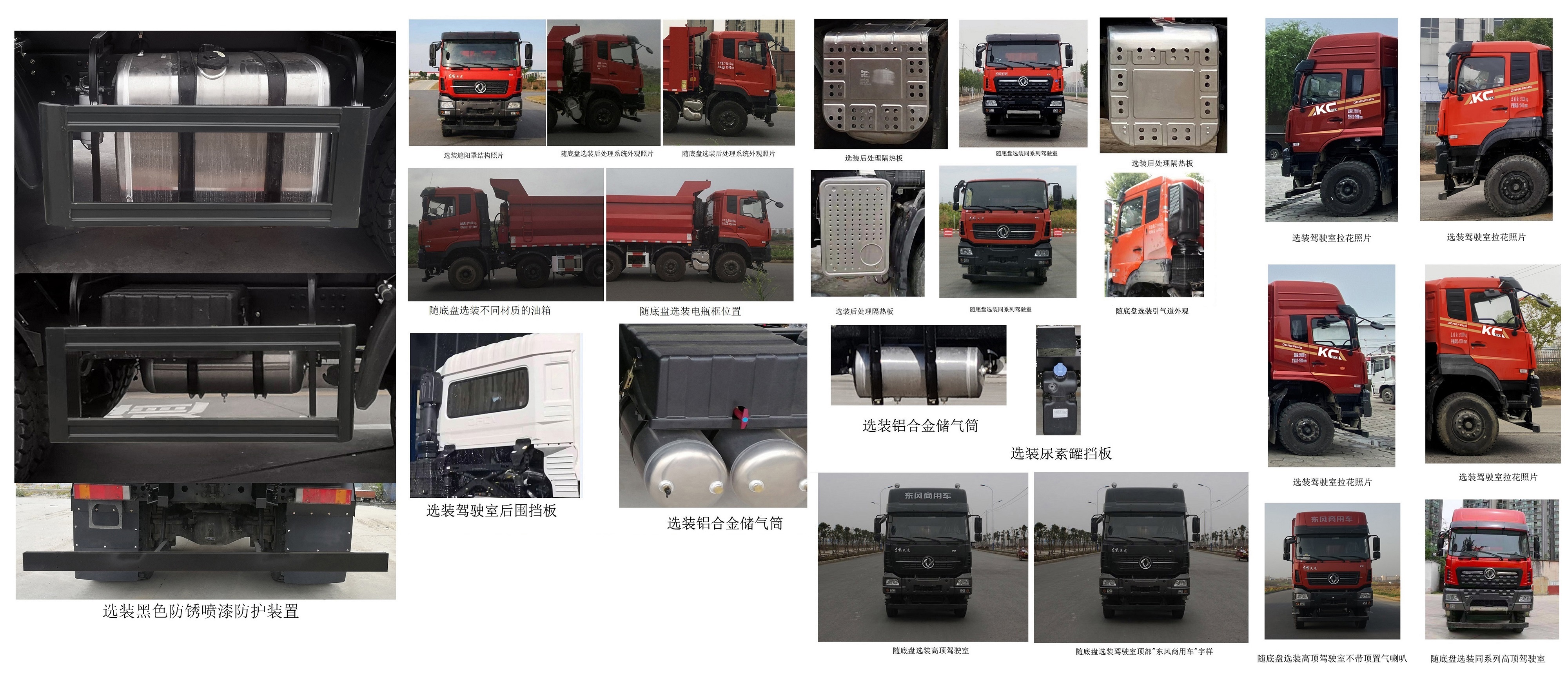 | 备注 | 随底盘选装遮阳罩,随底盘选装后处理系统外观,随底盘选装同系列驾驶室,随底盘选装后处理隔热板,随底盘选装驾驶室后围挡板,随底盘选装储气筒,随底盘选装尿素罐挡板,随底盘选装引气道外观,随底盘选装电瓶框位置,随底盘选装不同材质的油箱,选装翻转支架结构,选装铝合金储气筒,选装黑色防锈喷漆防护装置,选装驾驶室拉花,选装高顶驾驶室不带气喇叭,选装箱体侧面结构,选装货箱后部结构,选装环保盖。 | ||||||||||