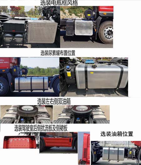 | 备注 | 选装示廓灯安装位置,选装电瓶框样式,侧裙板,驾驶室后侧扰流板及底盘布置.该车可选装ETC车载装置. 牵引货车列车总质量(kg)/整备质量/准拖挂车总质量/人数:41935/6500/35305/2,42000/6500/35305/3,42000/6500/35370/2. 轮距第一轴/轮距第二轴应为:2030,2050/1820,1860. | ||||||||||