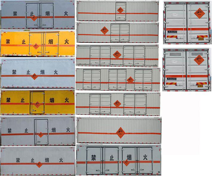 | 备注 | 厢体顶部封闭,不可开启;随底盘选装驾驶室;厢体侧面选装开门型式和位置,选装不带侧开门;仅采用前轮盘式制动器,前置排气管,子午线轮胎,后轴为空气悬架;该车安装具有卫星定位功能的行驶记录仪; | ||||||||||