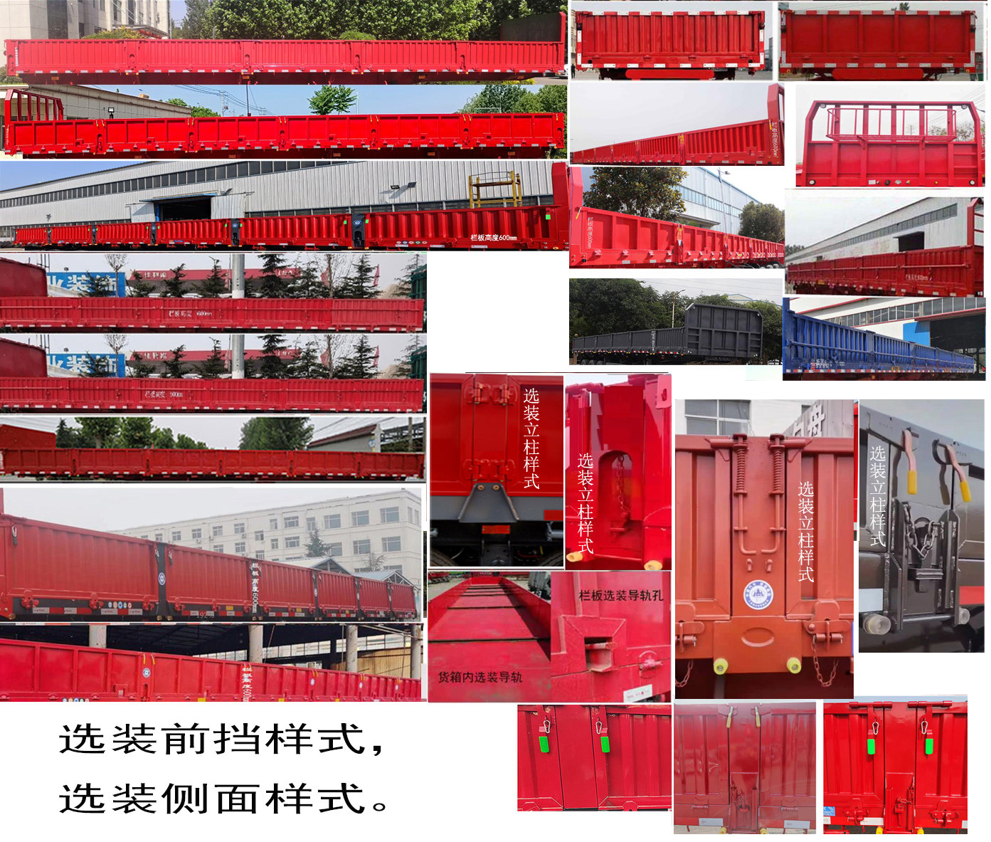 | 备注 | 1. 该车自卸方式为侧卸.选装牌照板位置,选装前档样式,选装后尾样式;栏板可选装横瓦楞、竖瓦楞和方管平板式;两侧栏板可选3开扇、4开扇、5开扇、6开扇,选装液压油箱位置及样式,选装立柱样式,货箱内选装导轨,栏板选装导轨孔,选装栏板样式,选装侧面样式; 2.车长/牵引销到车辆最前端距离/轴距/后悬(mm)/牵引销中心轴线到半挂车最后端水平距离/车宽/半挂车前回转半径 对应关系分别为:13000/1450/6880+1310+1310/2050/11550/2550(2500)/1931(1915);13000/1350/6880+1310+1310/2150/11650/2550(2500)/1857(1840);12500/1250/6580+1310+1310/2050/11250/2550(2500)/1786(1768);12000/1300/6280+1310+1310/1800/10700/2550(2500)/1821(1804). 3. 整备质量与额定载质量对应关系为:7100/32900,6800/33200,6520/33480; | ||||||||||