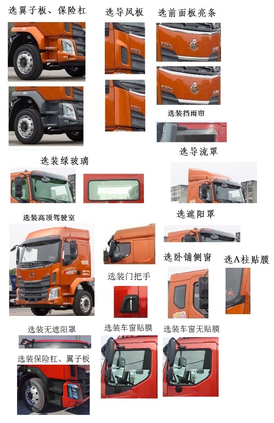 | 备注 | 选装高顶驾驶室、选装门把手、选装挡雨帘、选装卧铺侧窗、选遮阳罩、选无遮阳罩、选装导流罩、选翼子板、选导风板、保险杠、选前面板亮条、选A柱贴膜、选装绿玻璃。选装行李架、爬梯。车厢边板可选三段式。选箱体结构和后门。车厢底板离栏栅顶部距离2400,2450,2500,2550,2600,2650,2700mm。总长/厢长/轴距/前悬/后悬对应关系:7500/5200/4200/1345/1955;8100/5800/4500/1345/2255. | ||||||||||