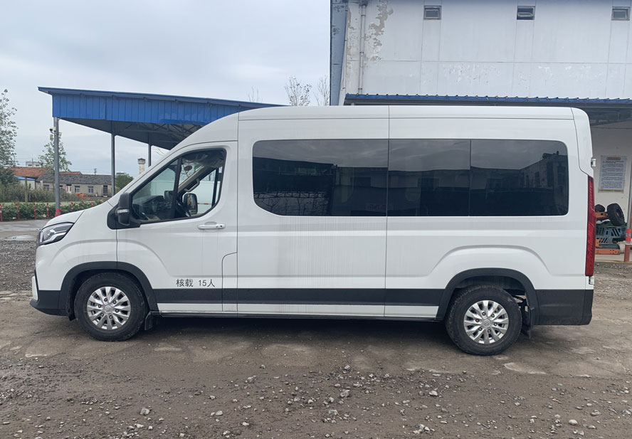 | 备注 | 1.该车装有卫星定位功能的行驶记录仪,采用整车控制器限速,限速100km/h; 2.整备质量对应关系:座位数为15座整备质量为2865kg,前/后轴荷为1480/1385,座位数为14座整备质量为2845kg,前/后轴荷为1465/1380,座位数为13座整备质量为2820kg,前/后轴荷为1470/1350,座位数为12座整备质量为2810kg,前/后轴荷为1490/1320,座位数为11座整备质量为2800kg,前/后轴荷为1485/1315,座位数为10座整备质量为2775kg,前/后轴荷为1480/1295.后悬架为空气悬挂时整车车高为2495mm,后悬架为钢板弹簧时整车车高为2525mm; 3.轮胎配置1 :前后轮均为215/75R16LT 10PR;轮胎配置2:前后轮均为215/75R16C 113; 4.电机型号为:TZ220XS001; 5.该车可选装卤素前大灯、卤素后尾灯、轮圈、轮饰盖、轮罩衬板、两侧同平面推拉窗、车身不同色牌照装饰板、车身不同色门把手、侧移门踏步、镀铬前格栅、360全景影像、电动滑移门.该车可选不装日间行车灯、可选不装前雾灯、可选不装后摄像头、可选不装后牌照转接板; 6.选装电助力液压驱动行车制动系统; 7.后空气悬挂配置电助力行车制动系统,后板簧悬挂配置真空助力行车制动系统; | ||||||||||
