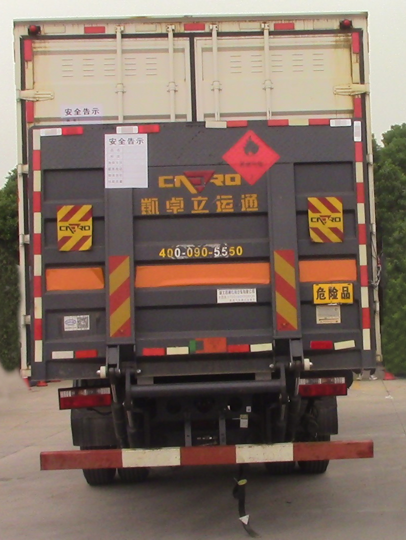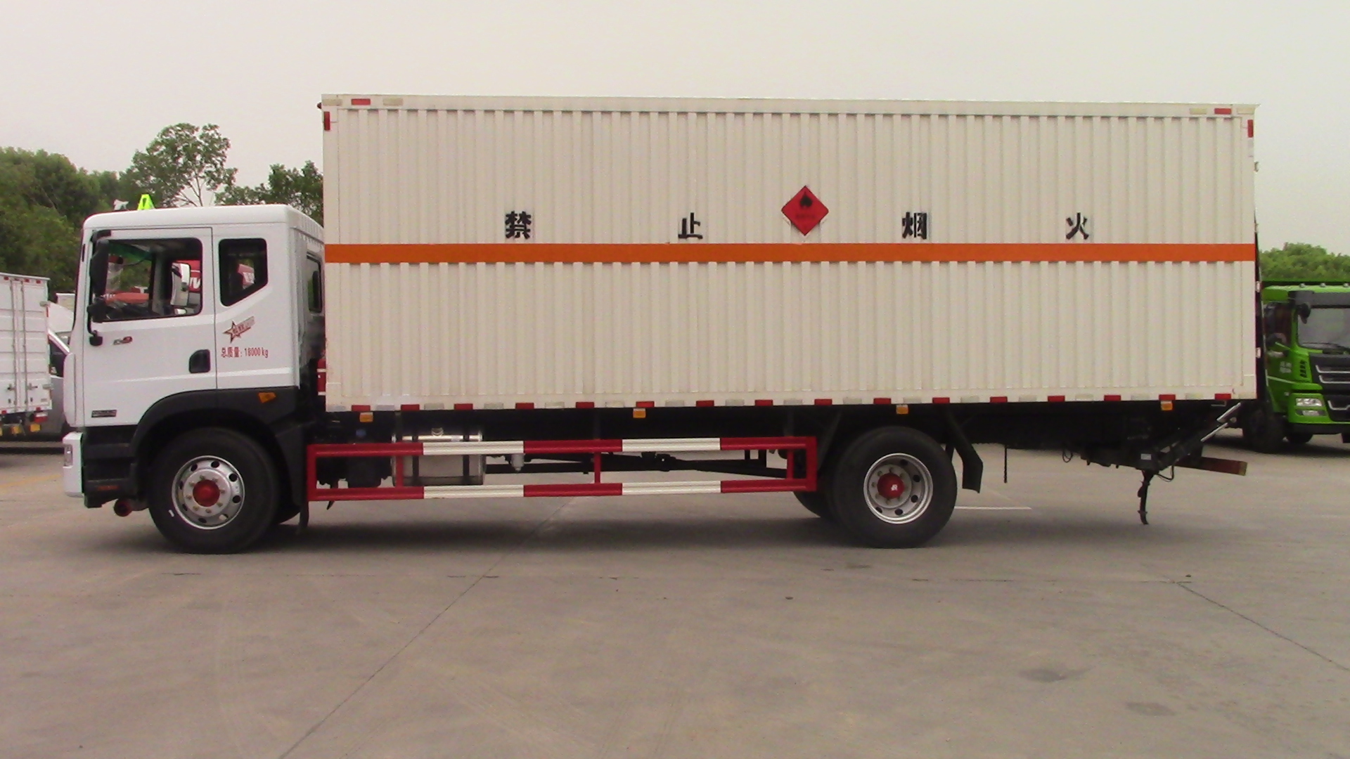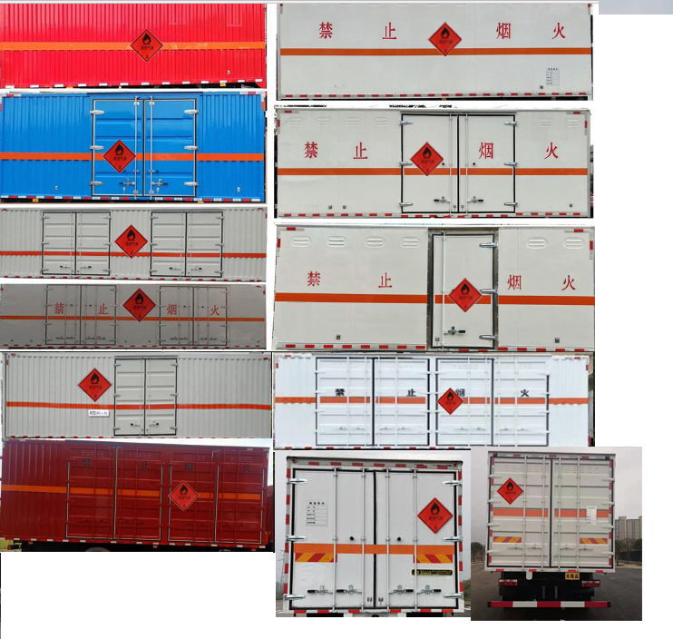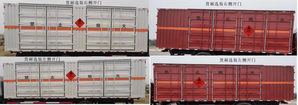 | 备注 | 该车为危险品运输车辆,选装驾驶室及货箱样式,限速装置80km,选装带液压升降尾板(液压升降尾板收起状态水平长度为290mm);也可选装不带液压升降尾板,运输具有独立容器包装的易燃气体,类项号为2.1;运输具有独立容器(瓶)包装的非易燃无毒气体,类项号为2.2。可选装ETC车载装置。 | ||||||||||