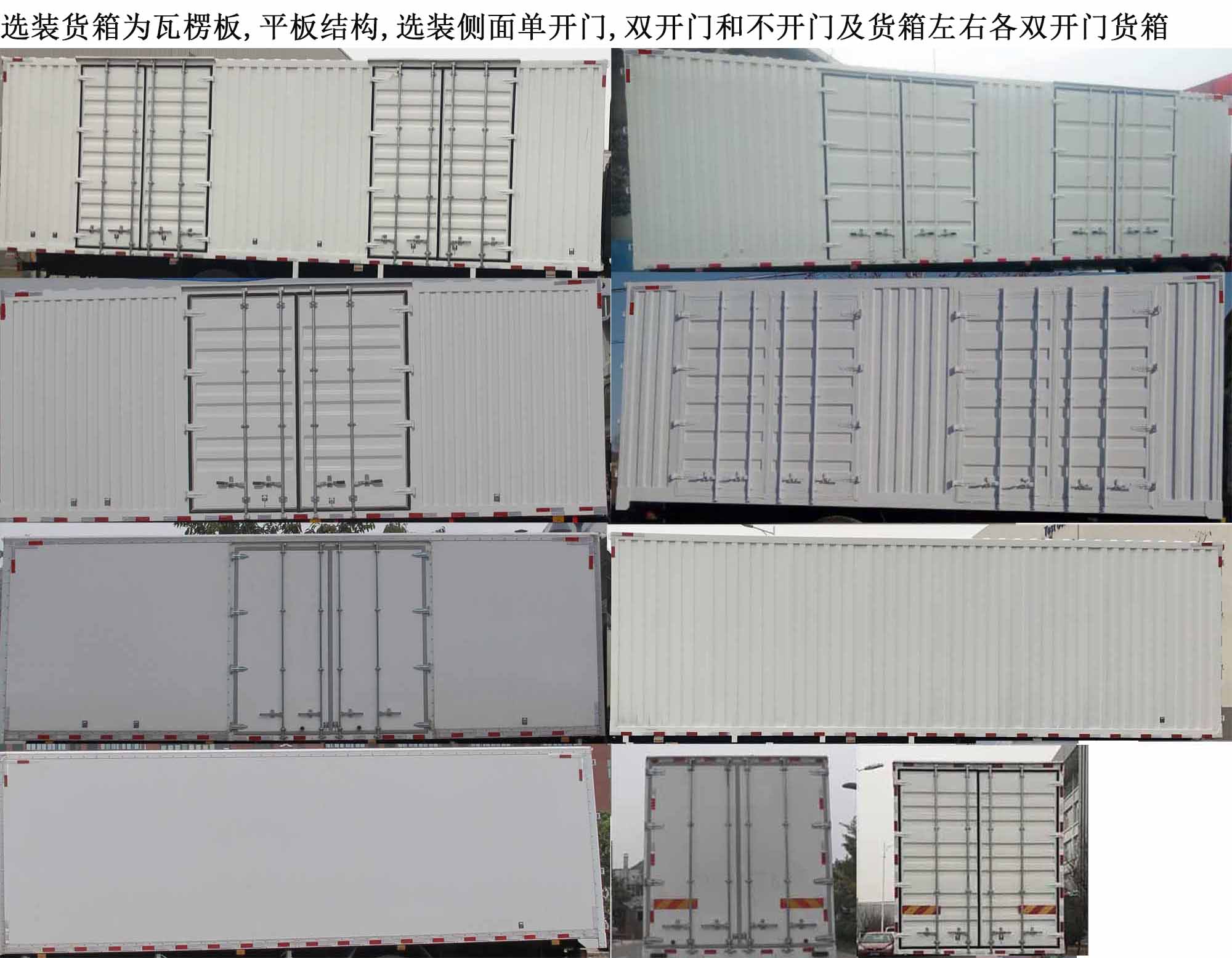 | 备注 | 1.选装货箱为瓦楞板,平板结构,选装侧面单开门,双开门和不开门及货箱左右各双开门货箱; 2.第三轴为随动轴,随动轴不可提升. 3.导流罩为选装. | ||||||||||