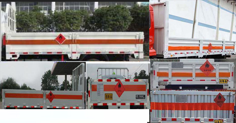 | 备注 | 该车主要用于运输具有独立容器(瓶)包装的气体,类项号:2.1,2.2。该车运输的介质为2.1项易燃气体时,车辆采用“易燃气体”标识牌,运输的介质为2.2项非易燃无毒气体时,车辆采用“不燃气体”标识牌。选装栏板样式,选装无仓栅结构,。随底盘选装驾驶室。 | ||||||||||