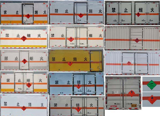 | 备注 | 该车主要用于运输独立容器包装的易燃气体气瓶:运送危险货物的品名为液化石油气,压缩天然气,压缩氢气,甲烷,乙炔,丁烷,丙烷,打火机或打火机加油器,压缩煤气,压缩氧,溶解乙炔;运送危险品类项号:2.1;该车随底盘选装驾驶室,选装侧门型式及位置,选装不开侧门,厢体侧面板;选装开百叶窗,选装瓦楞板结构.. | ||||||||||