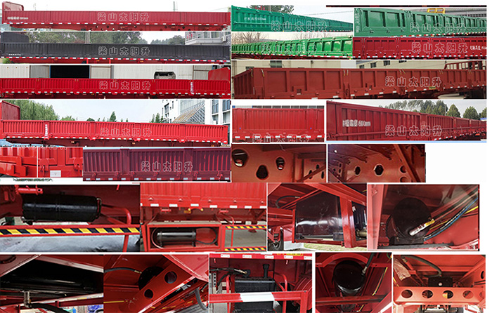 | 备注 | 1.卸货方式为:侧卸;选装前挡板结构,侧面选装5开门,6开门,整车货厢栏板选装竖瓦楞,方管十字花样式,选装吊开门样式,选装后部结构,选装号牌板样式;选装大梁异形孔结构; 选装液压油箱安装位置,油箱选装圆形或方形; 2,车长/轴距/后悬/牵引销中心到车辆最前端距离/半挂车前回转半径/牵引销中心轴线到半挂车辆长度最后端的水平距离(mm)的对应关系: 11500/5580+1310+1310/2100/1200/1750/10300, 11500/5580+1310+1310/2000/1300/1820/10200, 11000/5380+1310+1310/2000/1000/1620/10000, 11000/5380+1310+1310/1800/1200/1750/9800, 11000/5280+1310+1310/2000/1100/1683/9900, 10500/5180+1310+1310/1800/900/1560/9600, 10500/5180+1310+1310/1700/1000/1620/9500, 10500/5080+1310+1310/1700/1100/1683/9400; | ||||||||||