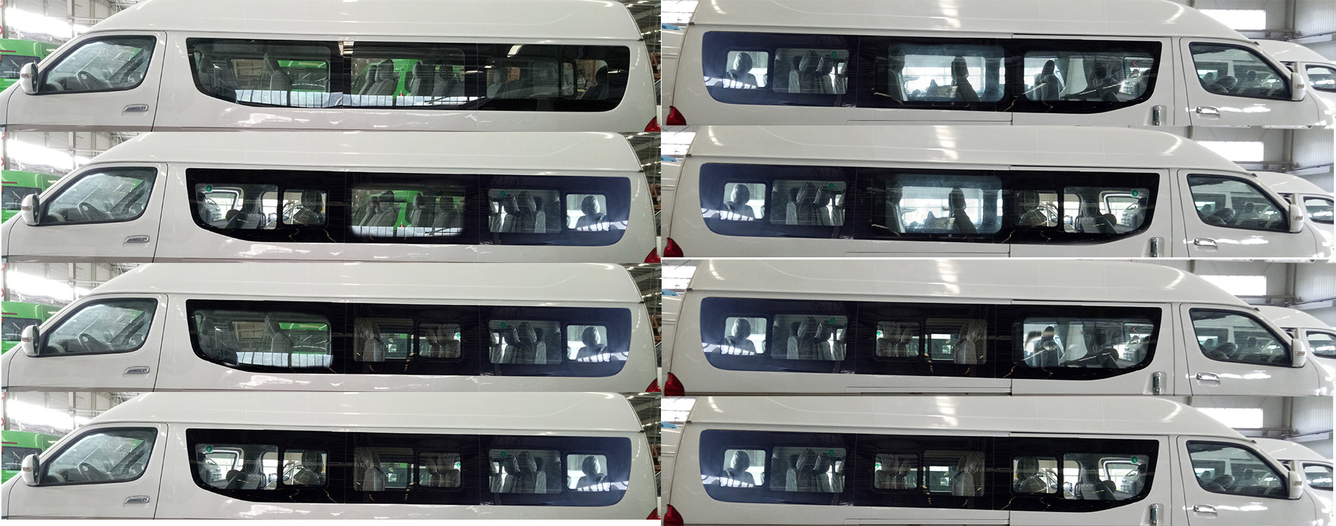| 备注 | 1、选装后照地镜、侧移窗、遮阳帘、前后保险杠颜色;2、选装前雾灯;3、安全出口组成情况:1个应急窗,1个乘客门,1个安全顶窗;4.该车型后围配置内外开启式尾门。 | ||||||||||