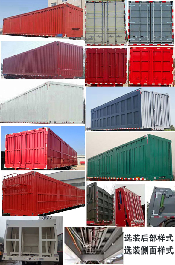 | 备注 | 该产品不能举升自卸,无自卸举升装置;该车顶部封闭,不可开启.卸货方式为传送带带动前部推板,具体为后部液压马达驱动减速机滚筒,滚筒带动传送带向后平移,实现垃圾的装料和卸料;选装侧面及后部样式,选装前部样式,选装左右两侧安装阀组支架和控制盒,选装底部安装液压油箱;车长/牵引销至车辆最前端的距离/前回转半径/轴距/后悬/尺寸对应关系(mm)为:9420/1200/1751/3970+1310+1310/1630,9020/1130/1704/3700+1310+1310/1570,8620/840/1527/3610+1310+1310/1550。 | ||||||||||