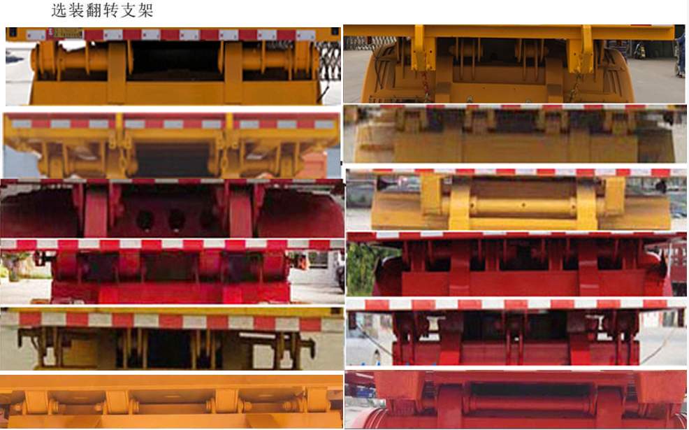 | 备注 | 选装侧面结构,选装后部结构,选装前档板结构,选装翻转支架结构,选装油箱安装位置. 车辆外形尺寸(mm)中长度/牵引销中心到车辆前端距离/轴距/后悬的对应关系为10500/1380/4950+1310+1310/1550,10300/1180/4950+1310+1310/1550,10000/980/4850+1310+1310/1550,9700/980/4750+1310+1310/1350,9500/1080/4650+1310+1310/1150,9300/880/4650+1310+1310/1150;车长/前回转半径/半挂车间隙半径/牵引销中心到车辆最后端的距离(mm)对应关系为:10500/1580/2400/9120,10300/1470/2400/9120,10000/1380/2400/9020,9700/1380/2400/8720,9500/1420/2400/8420,9300/1340/2400/8420;货厢栏板内尺寸(长*宽*高)(mm):9900,9700,9400,9100,9000,8900,8700×2470,2450,2430,2400,2380,2360,2350,2300×600(mm). | ||||||||||