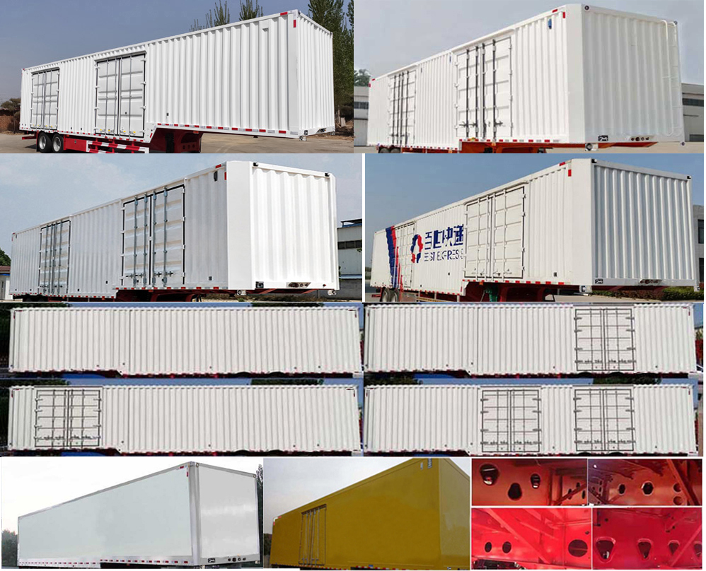| 备注 | 1,顶部封闭不可开启,选装前部样式,选装侧面样式,选装1对开门,2对开门及不开门结构;厢体后部选装横瓦楞,竖瓦楞样式,选装后部对开门及样式,选装号牌板样式,选装大梁异形孔结构; 2,车长/轴距/后悬/前悬/半挂车前回转半径/牵引销中心轴线到半挂车辆长度最后端的水平距离/整备质量(mm)的对应关系: 13750/8250+1310/2440/1750/2036/12000/6800, 13500/8250+1310/2440/1500/1825/12000/6800, 13000/8250+1310/2240/1200/1588/11800/6800; | ||||||||||