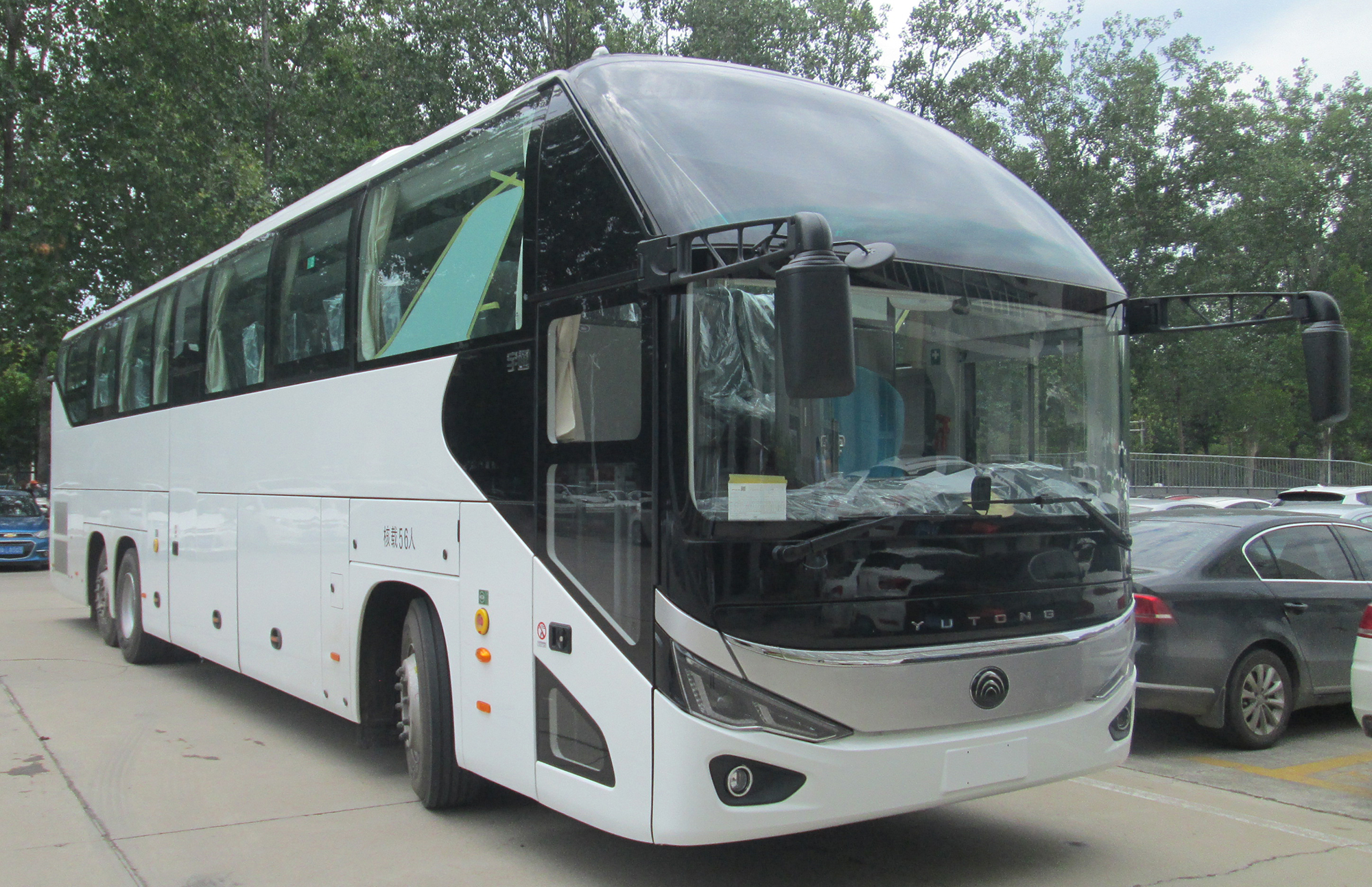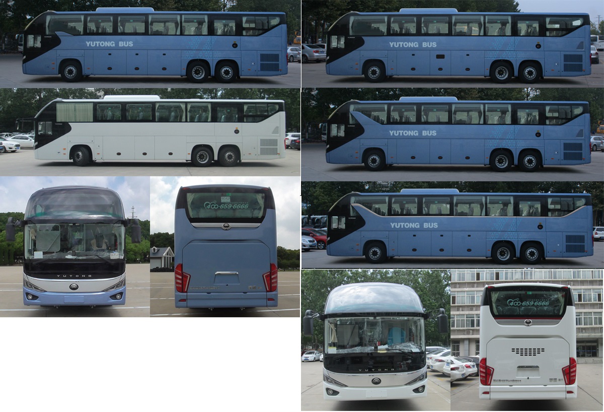 | 备注 | 1.选装低配时整备质量为14750kg,选装中配时整备质量为15050kg,选装高配时整备质量为15330kg,选装豪华配置时整备质量为15630kg;2.除外推窗外,可选装封闭式或局部推拉式侧窗或其它形式侧窗,乘客门可取消或选装推拉窗;3.可取消或选装不同型式侧围装饰件;4.可选装其它形式舱门,可选装或取消车身外表面加注口;5.可选装不同型号的视频监控系统、卫星定位终端和应急锤;6.选装电涡流缓速器时,缓速器上方有报警和隔热装置;选装液力缓速器时,缓速器上方无报警和隔热装置;7.该车的安全出口组成为:5个应急窗、2个乘客门、1个应急门、2个安全顶窗;8.选装不同配置(行李舱材料、结构等)对应不同的行李舱净高. | ||||||||||