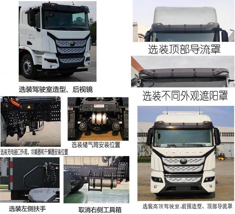 | 备注 | 1.可选装驾驶室造型、后视镜、高顶驾驶室、前围造型、顶部导流罩、不同外观遮阳罩、充电接口位置、冷凝器和干燥器安装位置、储气筒安装位置、左侧扶手、左侧爬梯、不同直径储气筒、充电接口位置及外观、踏步、爬梯安装位置、不同外观后组合灯、不同外观侧导流罩、选装不同外观电池罩、360环视系统;可取消右侧工具箱、右侧扶手、电池箱后格栅;2.可取消右侧工具箱;3.整备质量(kg)/准拖挂车总质量(kg)/鞍座最大承载质量(kg)对应关系:10000/38870/14870;10300/38570/14570,10900/37970/13970,10600/38270/14270;3.ABS型号EBS3、ABS-E 4S/4M对应ESC型号446 065,ABS型号CM4XL-4S/4M对应ESC型号CM-ESC. | ||||||||||
