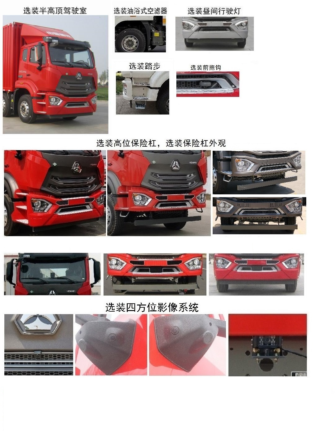 | 备注 | 该车选装半高顶或高顶驾驶室。可不选装导流罩。可不选装副保险杠和第三级上车踏板。选装昼间行驶灯。选装油浴式空滤器。选装平板厢体结构。安装具有卫星定位功能的行驶记录仪。货箱长度为9520,7800,9700时水平承载面系固点数量为22,9600时为24。轴距与货箱内长尺寸、车长、后悬对应关系如下:轴距1800+4300,货箱内长7800,对应车长10120,后悬2470;轴距1800+5600,货箱内长9520或9600或9700,对应车长12000,后悬3050。选装高位保险杠。选装保险杠外观。选装踏步。选装四方位影像系统。选装前拖钩。 | ||||||||||