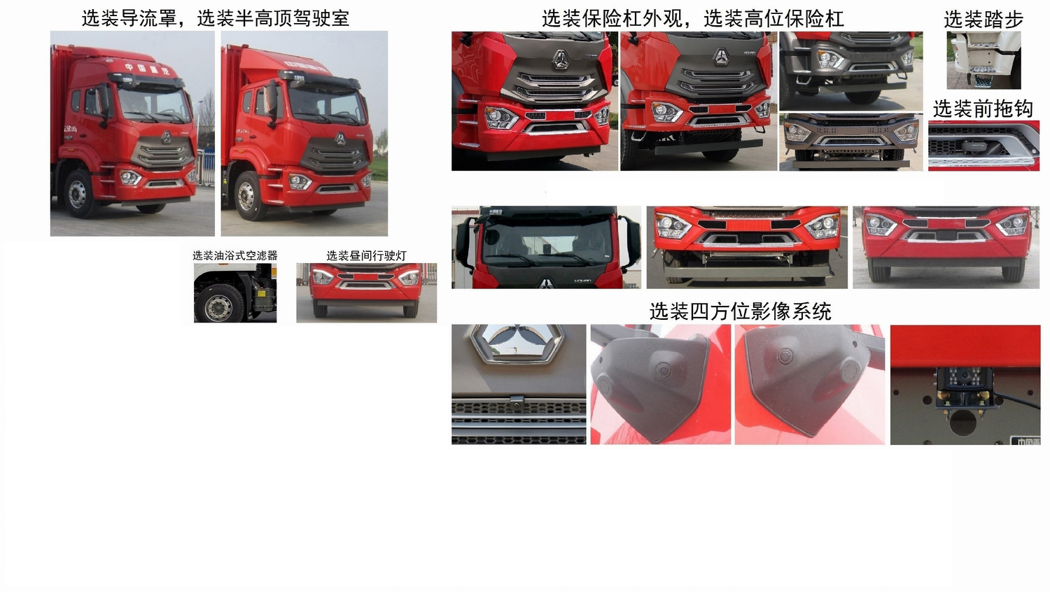 | 备注 | 该车选装半高顶或高顶驾驶室,同时可选装导流罩。选装高位保险杠。选装保险杠外观。选装昼间行驶灯。可选装油浴式空滤器。选装尿素箱位置。安装具有卫星定位功能的行驶记录仪。轴距为1800+3500时不可用12.00R20 18PR轮胎。轴距1800+3500,货箱内长6800,对应车长9150,后悬2300;轴距1800+5600,货箱内长9520或9600或9700,对应车长12000,后悬3050。选装踏步。选装前拖钩。选装四方位影像系统。可不选装液压尾板。 | ||||||||||